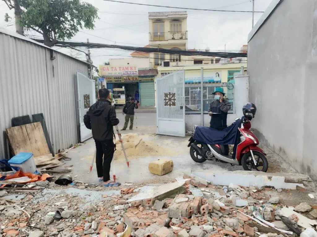 1.1 Xuống vị trí khu đất thống nhất ranh móc với chủ nhà , xác định tường chung tường riêng cũng như tổng quan khu đất